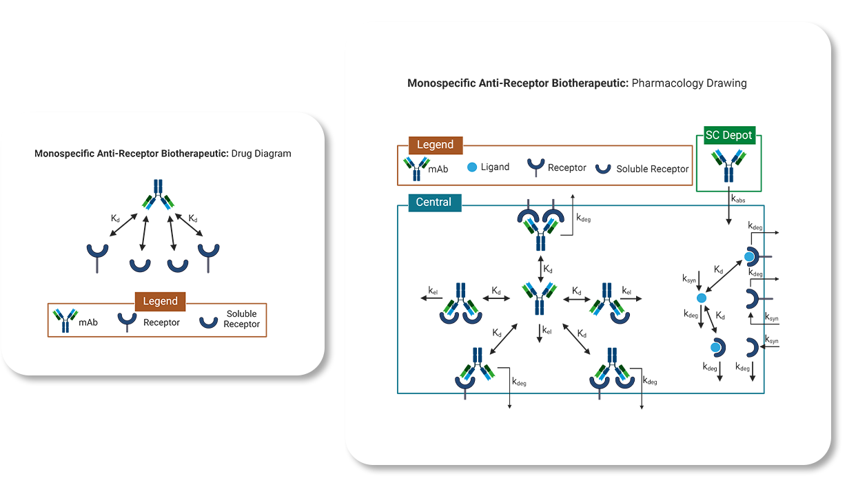 In addition to the Biotherapeutic model pack, Assess™ offers several libraries of monospecific and bispecific, single-compartment and multicompartment models covering common pharmacologies.