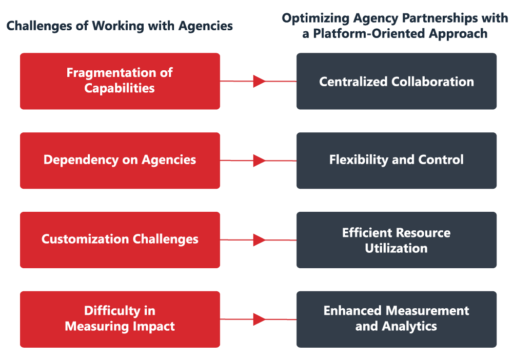 To address these challenges and make the most of agency partnerships, a platform-oriented approach offers a strategic solution. Such platforms enable seamless collaboration across multiple agencies while maintaining consistency, control, and flexibility across different markets.