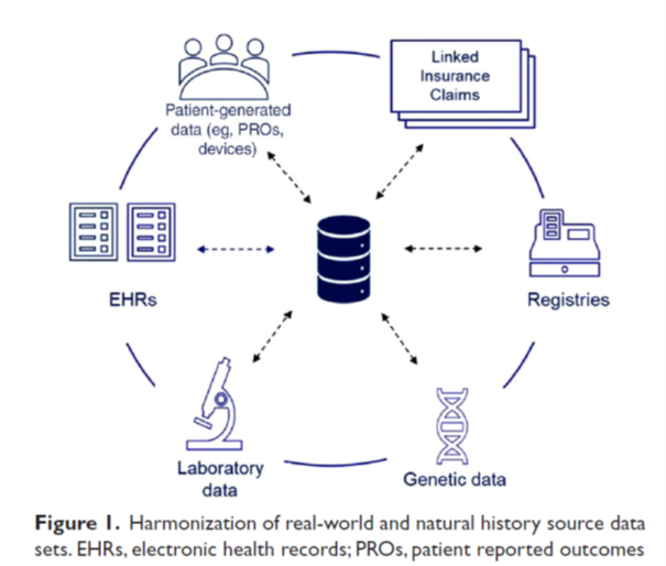 The answer lies in pooling the data across the spectrum of rare diseases. Data pooling can be done across trial populations and patient registries to account for the natural history of disease. Somewhat ironically, the rare diseases ecosystem presents a plethora of rich data and information. However, synthesizing that information and predictions is where AI can help. For a simplistic view of the richness of the ecosystem, refer to the article by Liu et al, 2022, and Figure 1 below.