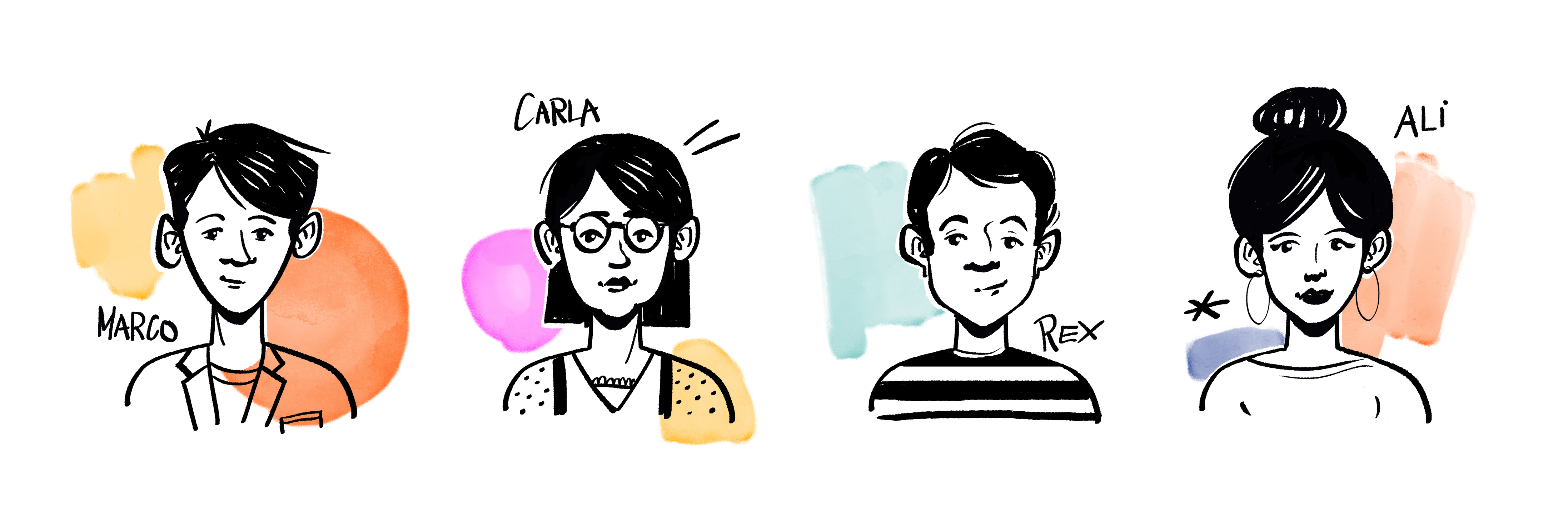 We have chosen four typical users: Marco, a medicinal chemist in a pharma company; Carla, a computational chemist in pharma; Rex, a registrar and cheminformatician, also in pharma; and Ali, an associate professor in academia.