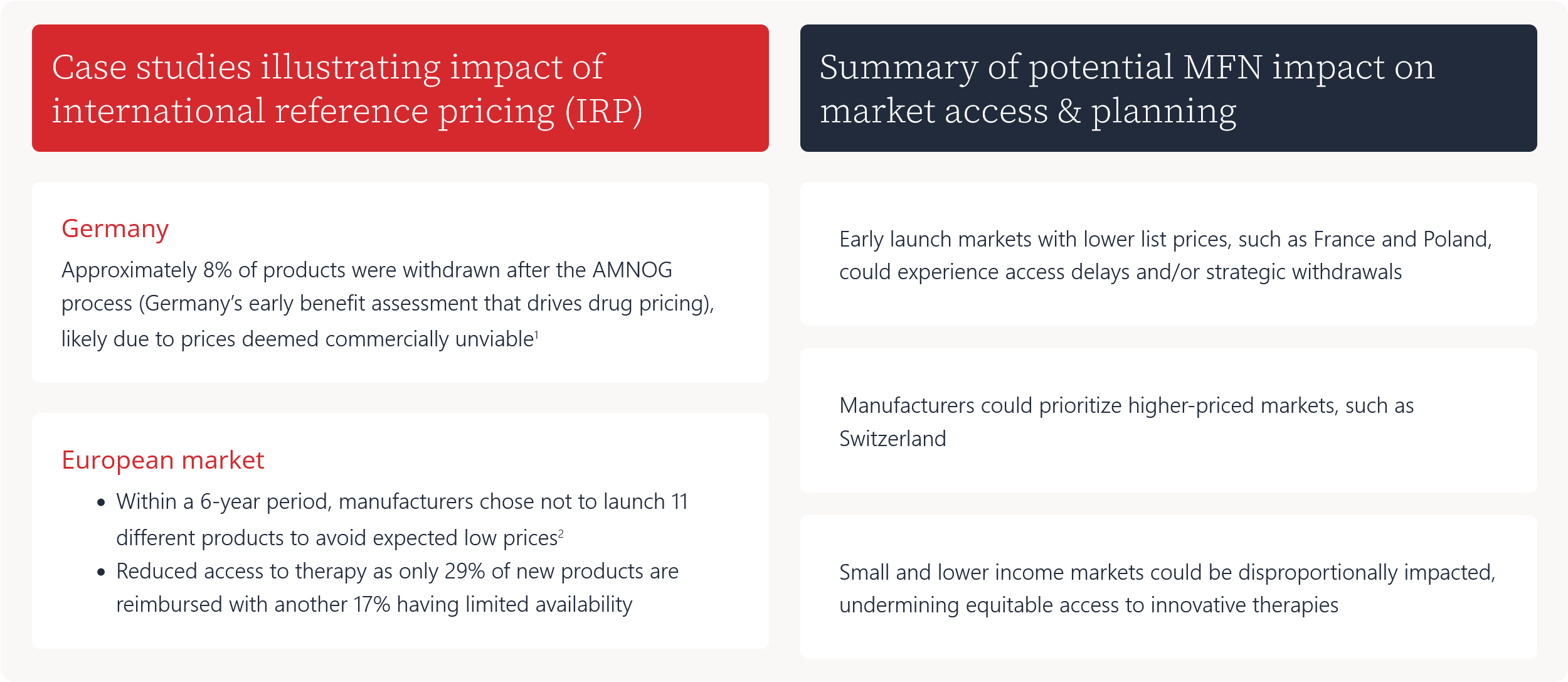 Small and lower income markets could be disproportionally impacted, undermining equitable access to innovative therapies