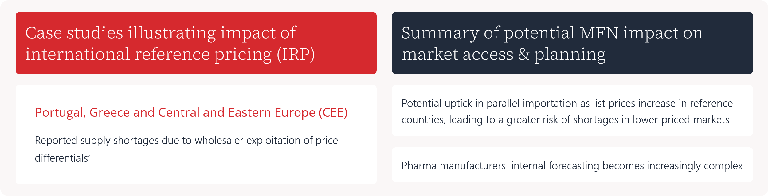 Potential uptick in parallel importation as list prices increase in reference countries, leading to a greater risk of shortages in lower-priced markets