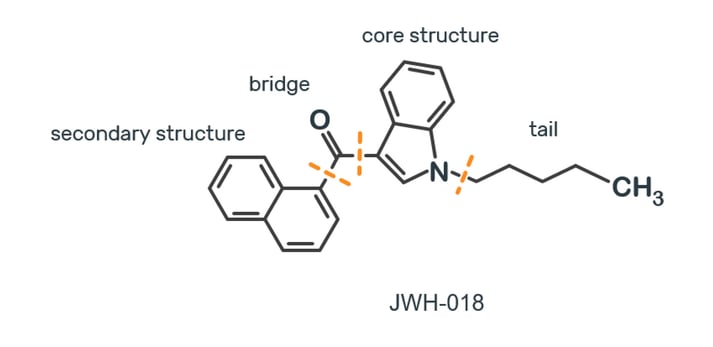 Substructural fragments in JWH-018 that can be replaced in designing synthetic cannabinoids