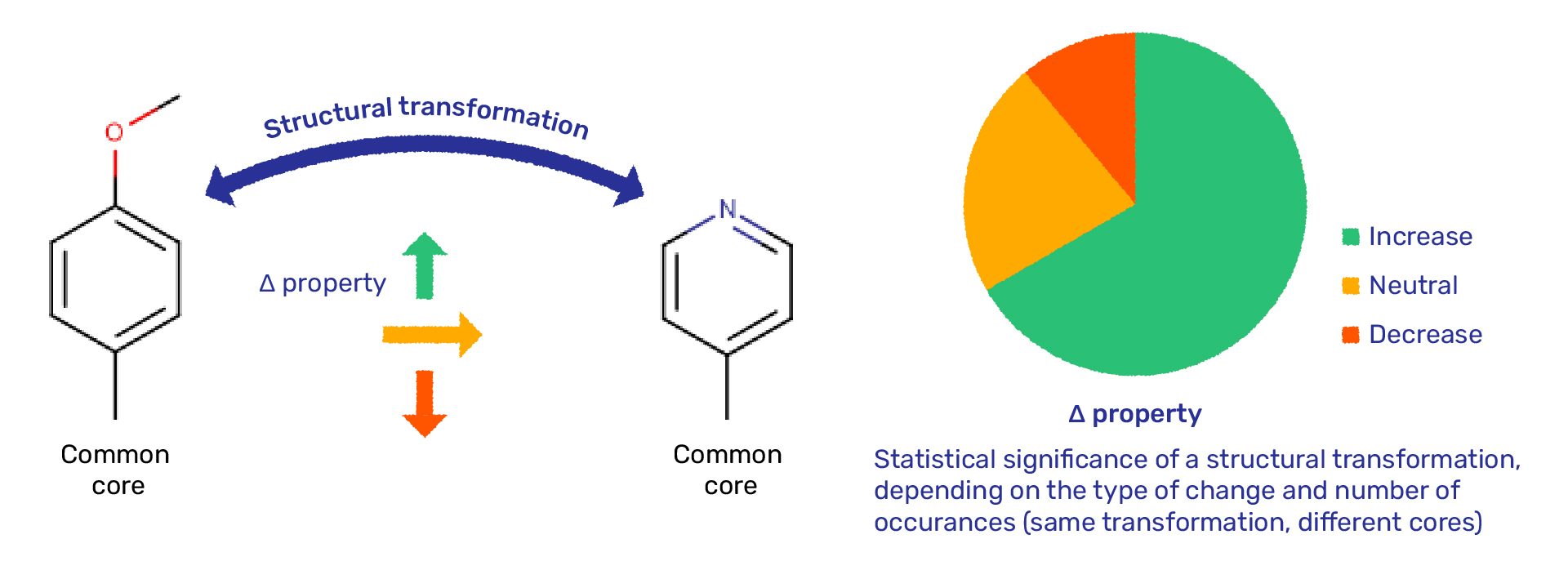 Designing and optimizing novel drugs require both creativity and knowledge. Using the Matched Molecular Pairs method is one way of supporting this process. Commonly, MMP is used to connect structural changes of drug molecules to corresponding changes in assay readouts (Figure 1).