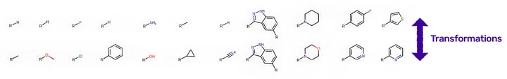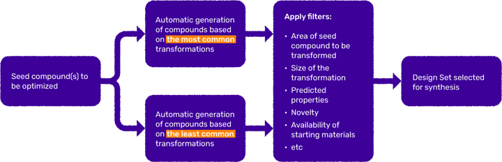 - Based on the least common transformations: creation of analogues that are “unexpected” – compounds a medicinal chemist would not immediately think about, but could increase the chance of creating novel compounds