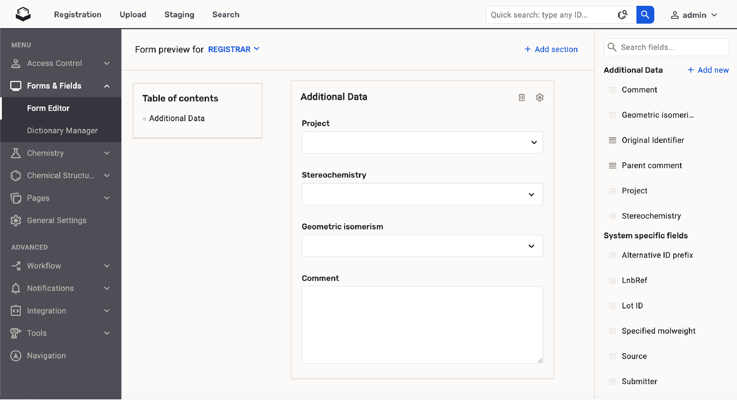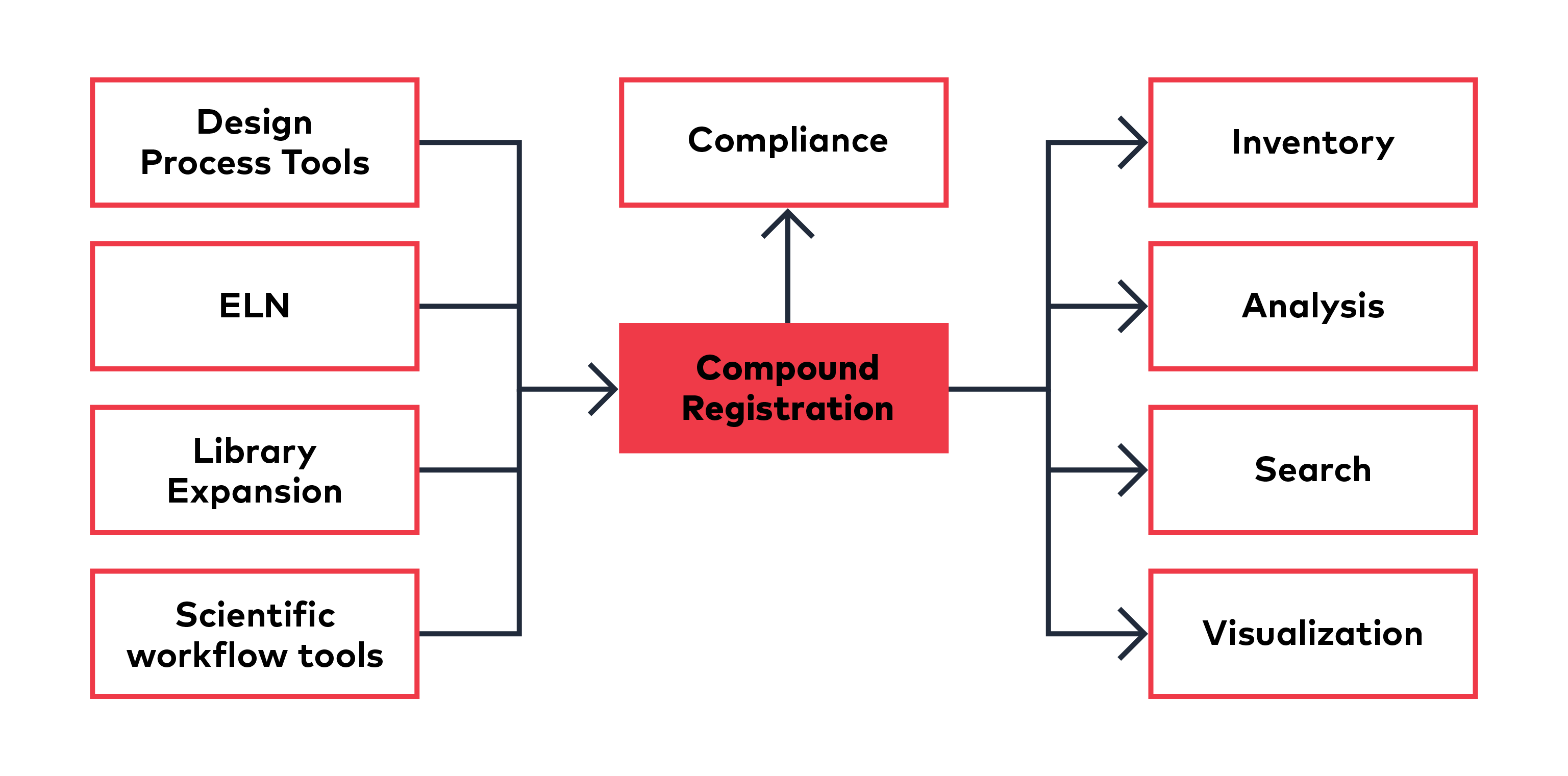 Compound Registration compares the uniqueness of new small molecules against those already stored in your database. It comes with a fully functional, preset registration workflow you can customize in detail to fit your business logic.